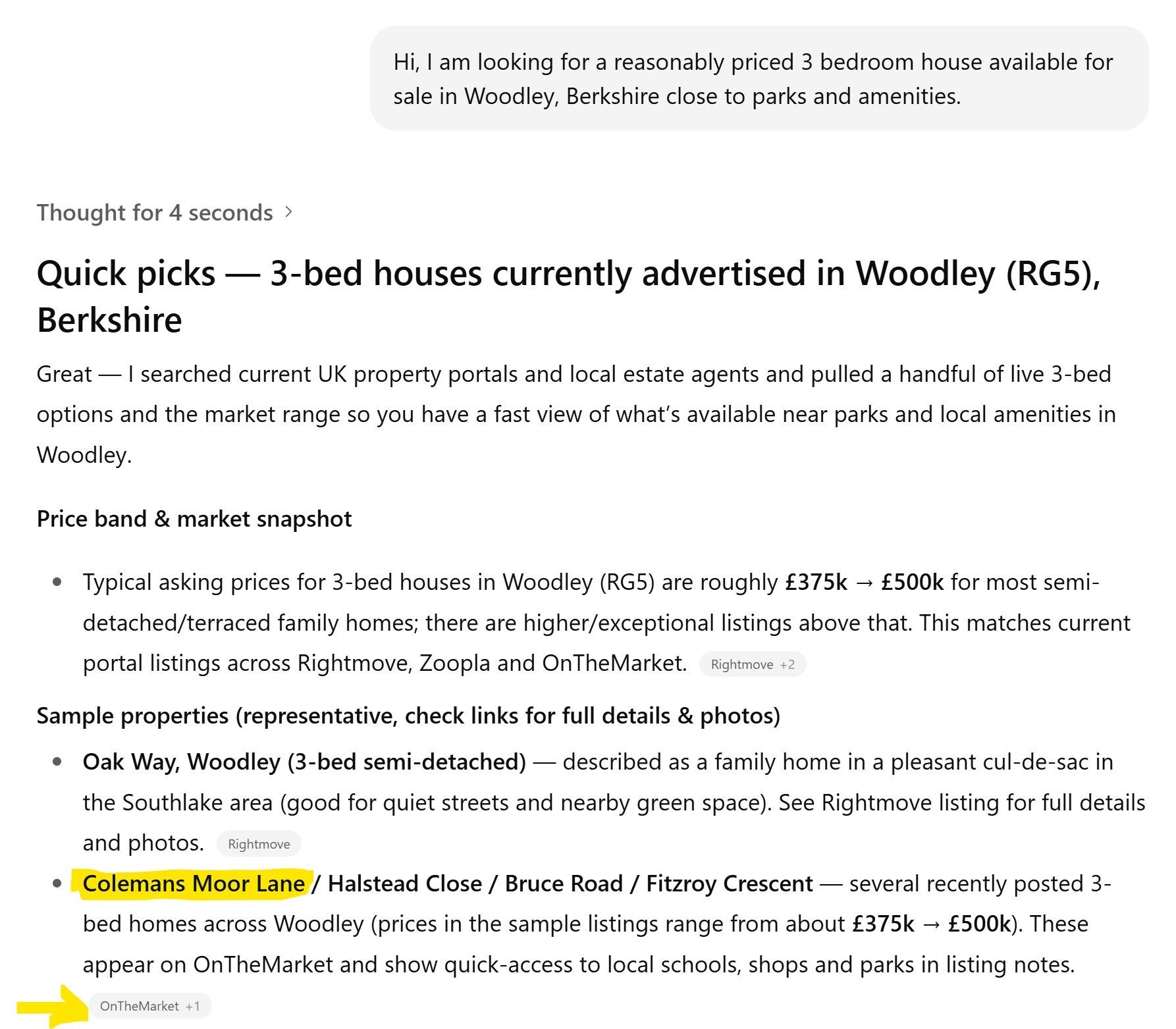 For instance, one of my listings in Woodley, Reading now appears instantly when users search through ChatGPT.